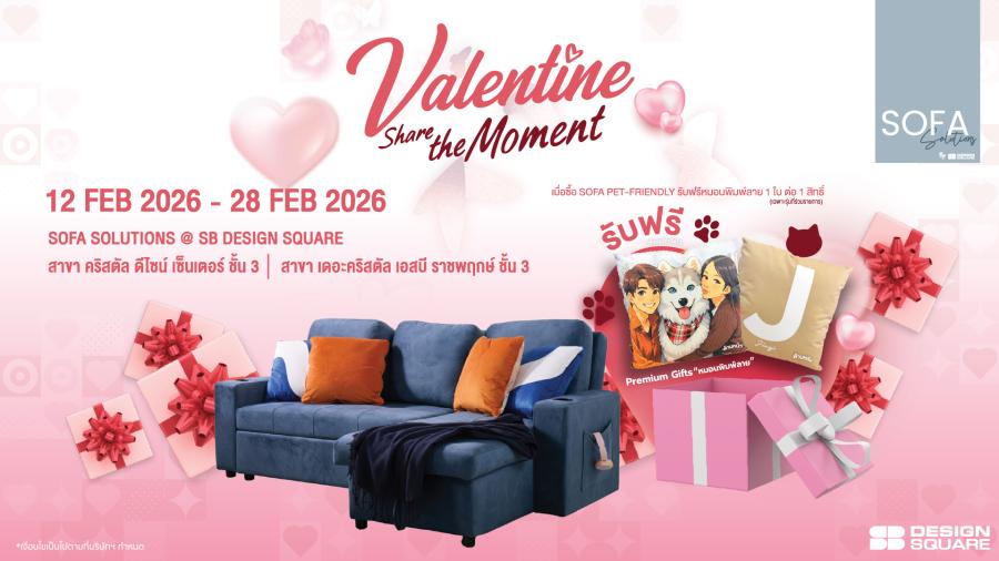 เอสบี ดีไซน์สแควร์ ชวนคู่รักและ Pet Lovers “Share the Moment” ซื้อโซฟา Pet Friendly รับฟรีหมอนพิมพ์ลายภาพถ่าย ในแคมเปญวาเลนไทน์ 12 – 28 กุมภาพันธ์ 2569
