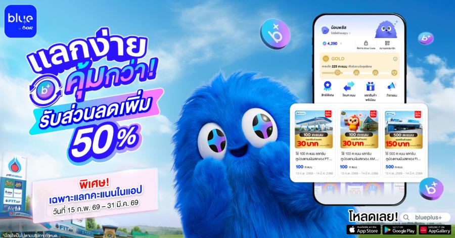 blueplus+ เปิดตัวฟีเจอร์ใหม่ล่าสุด “แลกคะแนนแทนเงินสด” พร้อมโปรโมชั่นพิเศษแลกคะแนนแทนเงินสดผ่านแอปครั้งแรก รับส่วนลดเพิ่มทันที 50%