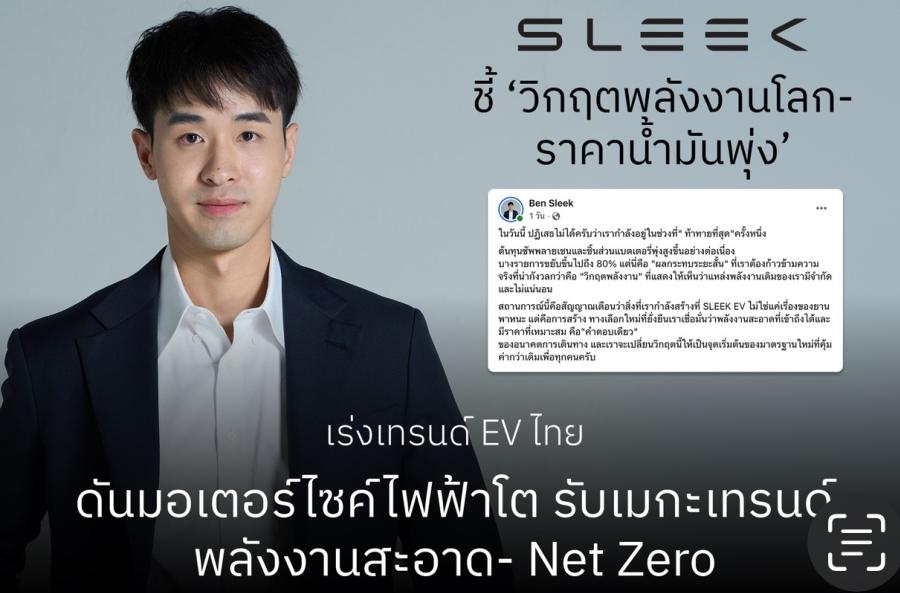 SLEEK EV ชี้ ‘วิกฤตพลังงานโลก-ราคาน้ำมันพุ่ง’ เร่งเทรนด์ EV ไทย ดันมอเตอร์ไซค์ไฟฟ้าโต รับเมกะเทรนด์พลังงานสะอาด- Net Zero