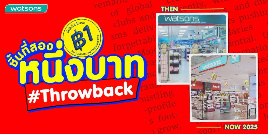 กรุงเทพฯ ประเทศไทย – 24 กรกฎาคม 2568 – มีใครเคยเป็นบ้าง? ตอนเดินเข้าร้านวัตสันแล้วเจอแคมเปญ “ชิ้นที่สอง 1 บาท” ทีไร ต้องมีของติดมือกลับบ้านด้วยทุกครั้ง วันนี้ วัตสัน ผู้นำร้านเพื่อสุขภาพและความงามอันดับหนึ่งของไทย ชวนคุณย้อนเวลากลับไปสู่จุดเริ่มต้นของหนึ่งในไอคอนนิคแคมเปญที่เป็นเสมือนคู่แฝดของแบรนด์ที่ ”สร้างทั้งความคุ้มค่าและความทรงจำร่วมให้กับลูกค้าหลายล้านคน”