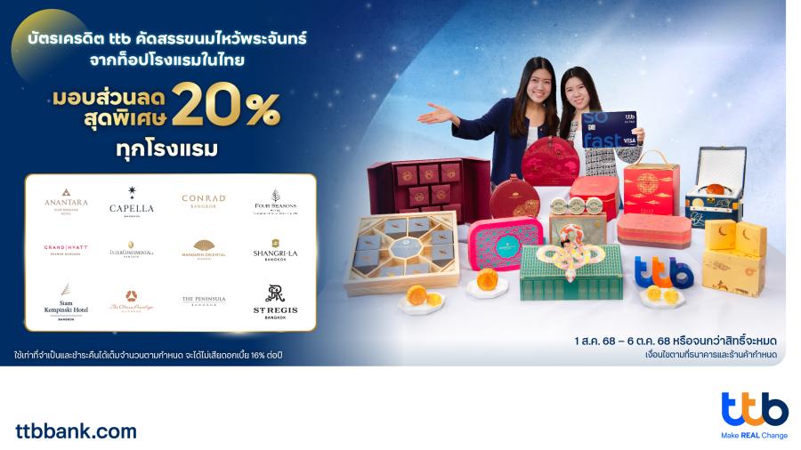 บัตรเครดิต ttb คัดสรรขนมไหว้พระจันทร์จากท็อปโรงแรมในไทย มอบส่วนลดสุดพิเศษ 20% ทุกโรงแรม