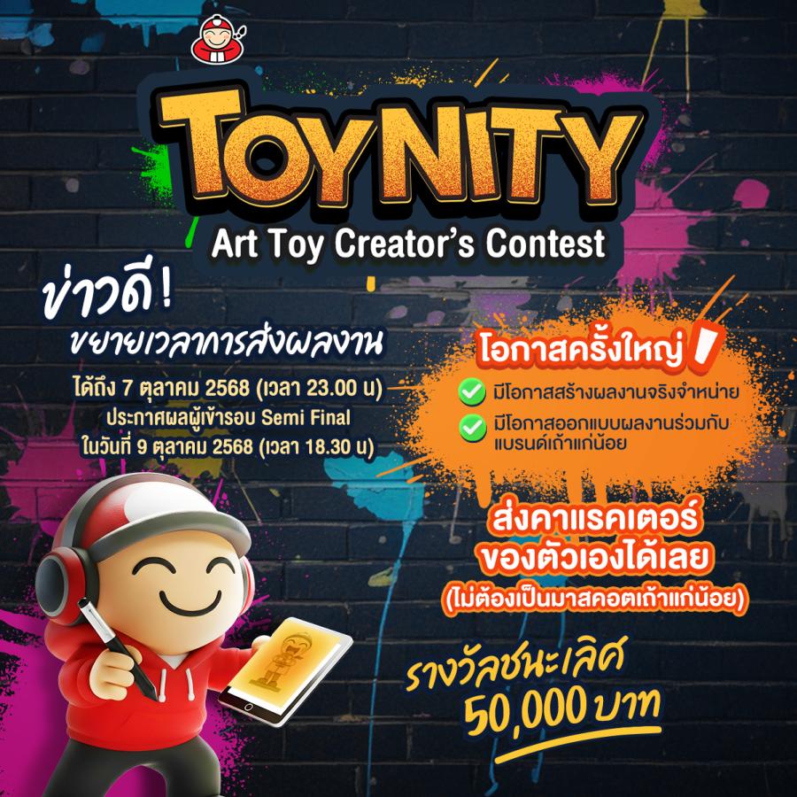 ข่าวดี ขยายเวลาส่งผลงานได้ถึง 7 ตุลาคม 2568 เวลา 23.00 น. มาปล่อยจินตนาการให้โลดแล่นร่วมกับแบรนด์เถ้าแก่น้อย! ”TOYNITY Art Toy Character Contest By Taokaenoi” ชวนนักออกแบบทุกคนเข้าร่วมการประกวด Art Toy ครั้งแรกจากเถ้าแก่น้อย!