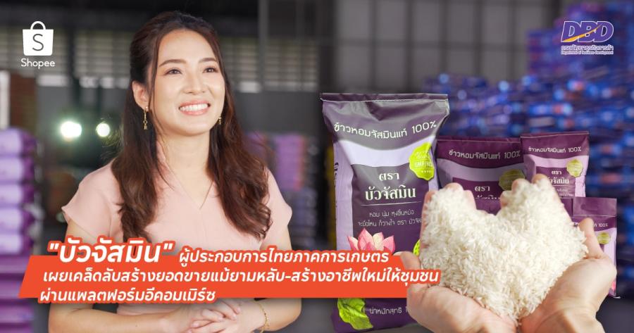 “ข้าวหอมบัวจัสมิน” แบรนด์ข้าวสาร SME จากกาญจนบุรี ที่ต่อยอดธุรกิจครอบครัวกว่า 40 ปี สู่การขายออนไลน์เต็มรูปแบบ สร้างยอดขายจากหลักหน่วย สู่หลักพันออเดอร์ต่อวัน คว้ารางวัล DBD Influencer Award และสร้างรายได้ยั่งยืนให้คนในชุมชนจากความสำเร็จของบัวจัสมิน สู่การคืนกลับให้ชุมชน พร้อมทั้งส่งต่อความรักด้วยข้าวสารและสามารถเติบโตอย่างยั่งยืนได้บน Shopee