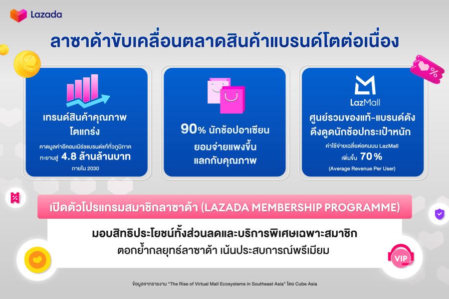 นอกจากสร้างความภักดีต่อแบรนด์แล้ว โปรแกรมสมาชิกของลาซาด้ายังเป็นไปตามทิศทางของลาซาด้าที่มุ่งส่งมอบมาตรฐานการบริการระดับพรีเมียม ซึ่งมีส่วนช่วยผลักดันกลยุทธ์สร้างการเติบโตของ LazMall ที่ขับเคลื่อนด้วยสินค้าแบรนด์ (Brand-led Strategy) พร้อมตอบรับเทรนด์ความต้องการของนักช้อปที่มองหาสินค้าแท้จากแบรนด์ชั้นนำ