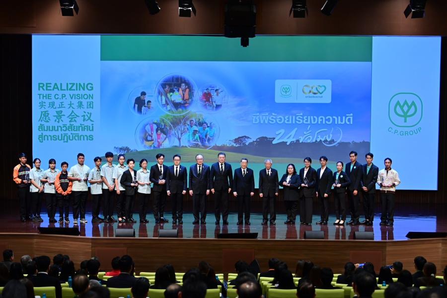 พิธีมอบรางวัล “ร้อยเรียงความดี 24 ชั่วโมง” จัดขึ้นเพื่อสะท้อนว่า ความดีไม่ได้เกิดขึ้นเพียงในยามวิกฤตเท่านั้น แต่สามารถเกิดขึ้นได้ในทุกวัน จากการตัดสินใจของคนทำงานที่เลือกทำสิ่งที่ถูกต้องเพื่อผู้อื่น สังคม และองค์กร ภายใต้แนวคิดของ นายธนินท์ เจียรวนนท์ ประธานอาวุโส นายสุภกิต เจียรวนนท์ ประธานกรรมการ และ นายศุภชัย เจียรวนนท์ ประธานคณะผู้บริหาร เครือเจริญโภคภัณฑ์ ในการขยายพลังความดีให้กลายเป็นวัฒนธรรมองค์กรที่เกิดขึ้นได้จริงในทุกพื้นที่ของการทำงาน ซึ่งตลอด 1 ปีที่ผ่านมา โครงการ “ซีพีร้อยเรียงความดี 24 ชั่วโมง” ได้เชิดชูเรื่องราวความดีของพนักงานที่สร้างแรงบันดาลใจรวมแล้ว 17 เรื่อง และในครั้งที่ 5/2568 นี้ ได้คัดเลือกเพิ่มอีก 11 เรื่อง รวมเป็น 28 เรื่องราว