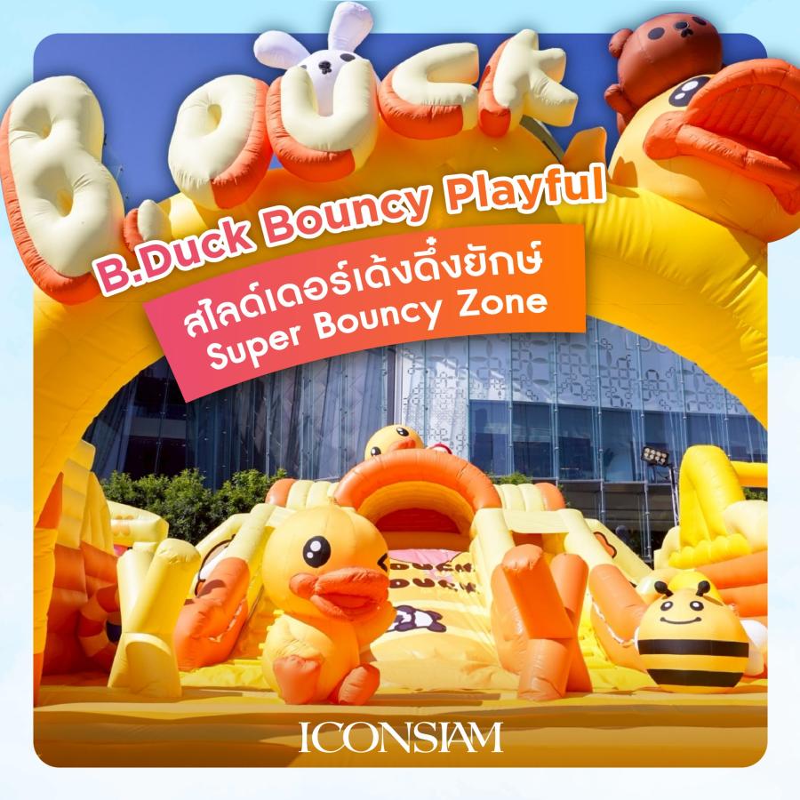 นี่คืออาณาจักรสีเหลืองที่เต็มไปด้วยความน่ารักที่สุด เพราะไอคอนสยามเนรมิตริเวอร์ พาร์คให้กลายเป็นอาณาจักร B.Duck ที่แสนสดใส ยกเอาเครื่องเล่นเป่าลมขนาดยักษ์สุดอลังการมาให้เด็ก ๆ ได้ปล่อยพลัง ปีน ป่าย พร้อม B.Duck Pop-up Shop โซนของที่ระลึกสุดน่ารัก และยังเพิ่มสีสันด้วยเหล่า B.Duck Mascot ทั้ง 5 คาแรกเตอร์ ที่จะออกมาเดินทักทายสร้างรอยยิ้มให้กับทุกคน