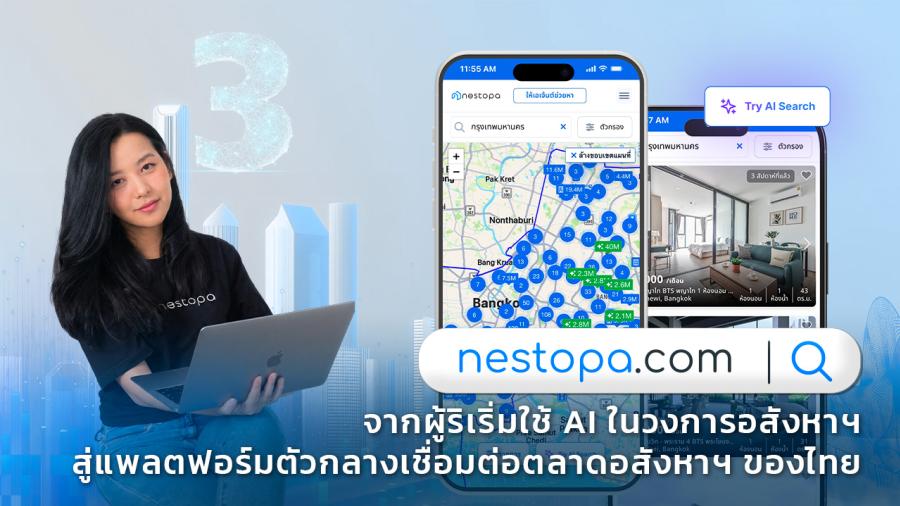 นับตั้งแต่วันเปิดตัวครั้งแรก! ในเดือนเมษายน 2566 ถึงวันนี้ Nestopa.com (Proptech) แพลตฟอร์มอสังหาริมทรัพย์ยุคใหม่ ของไทยกำลังจะก้าวสู่ปีที่ 3 หมุดหมายสำคัญในการเติบโตบนเส้นทางจากการเป็นแพลตฟอร์มแรกที่นำเทคโนโลยี AI (Artificial Intelligence) มาแปลงโฉมการค้นหาอสังหาฯ สู่บทบาทของตัวกลางที่เชื่อมโยงทุกภาคส่วนในอุตสาหกรรมอสังหาฯ เข้าด้วยกัน มีประกาศอสังหาฯ มากกว่า 300000 รายการทั่วประเทศ