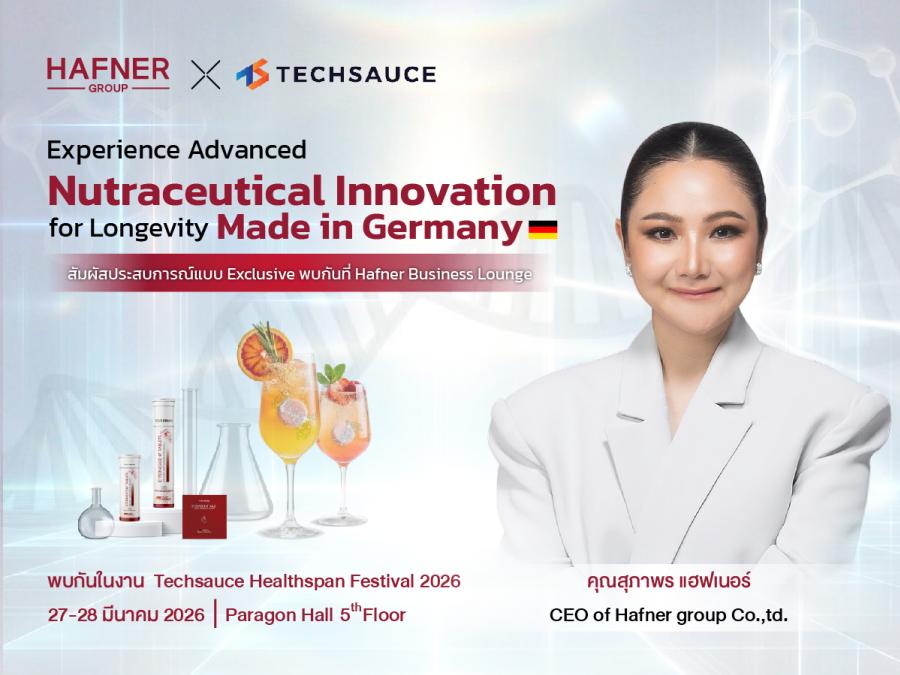 โอกาสสำคัญสำหรับนักธุรกิจและแบรนด์สุขภาพที่ต้องการยกระดับสู่สากล! HAFNER GROUP (ฮาฟเนอร์ กรุ๊ป) ในฐานะ Strategic Manufacturing Partner นำโดย สุภาพร แฮฟเนอร์ กรรมการผู้จัดการและผู้ก่อตั้ง เตรียมขนทัพนวัตกรรมและความเชี่ยวชาญด้านการผลิตระดับ World-Class จากฐานการผลิตในประเทศเยอรมนี มา ร่วมจัดแสดงในงาน Techsauce Healthspan Festival 2026มหกรรมนวัตกรรมสุขภาพครบวงจรที่ยิ่งใหญ่ที่สุด