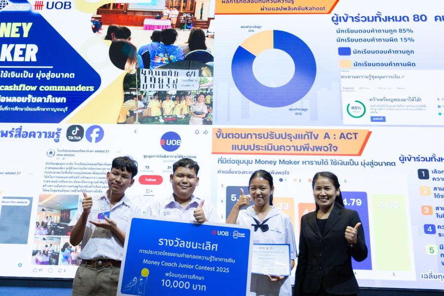 พวกเขาเรียกตัวเองว่า BRP Cashflow Commanders เจ้าของผลงาน “Money Maker: หารายได้ ใช้เงินเป็น มุ่งสู่อนาคต” ซึ่งคว้ารางวัลชนะเลิศจากการประกวดโครงงาน Money Coach Junior Contest 2568 ของธนาคารยูโอบี ประเทศไทย และเป็นส่วนหนึ่งของปรากฏการณ์ที่กำลังเกิดขึ้นอย่างเงียบๆ เมื่อเยาวชนไทยเริ่มเป็นผู้ถ่ายทอดความรู้ทางการเงินให้กับคนในชุมชนของตัวเอง